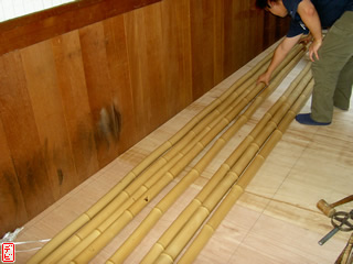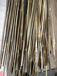 【デビ】竹弓の外竹・内竹には真直ぐな「芽竹」が使われているので、皆さんご使用の竹弓の節を一度観察してみてはいかがでしょうか。竹は一節ごとに交互に枝を出しますから、「節目(芽の出るくぼみ)」が見つけられますよ。
